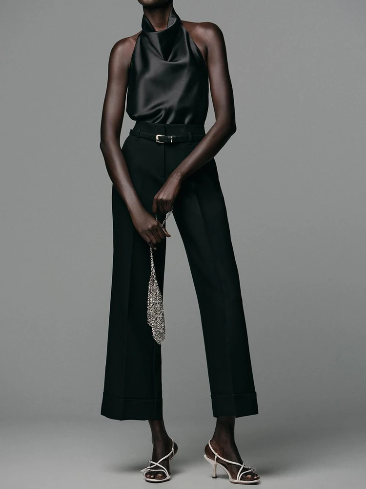 Elevate your wardrobe with these high-waisted straight leg trousers, perfect for the modern woman on-the-go.